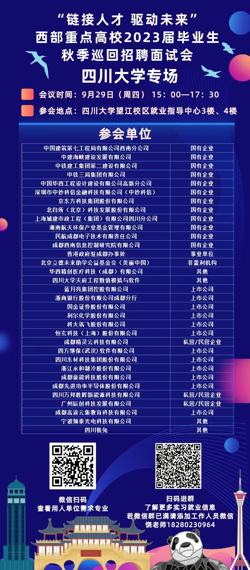 http://jy.scu.edu.cn/index/index/jobfairdetail.html?data=MDAwMDAwMDAwMJG6n3_Ed6imi4qQtceeZJqKqLKvsoizpsp5u9GGrZ6ujs6WZMKGcdKLoJDStXqn1ZDPqaE